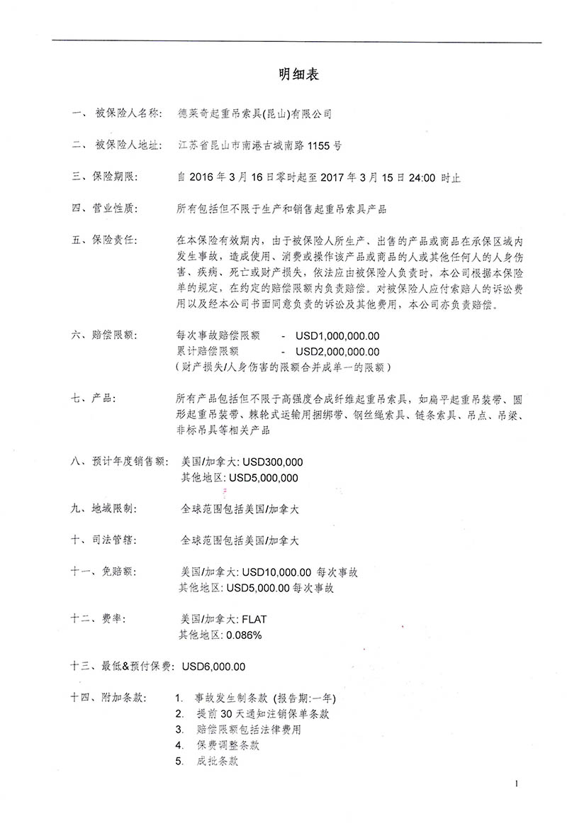德國多來勁吊具太平洋保險公司產(chǎn)品責任險