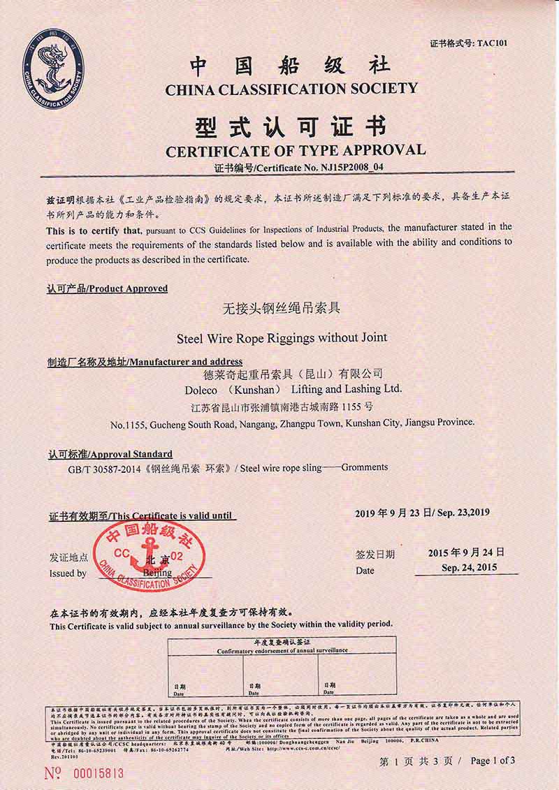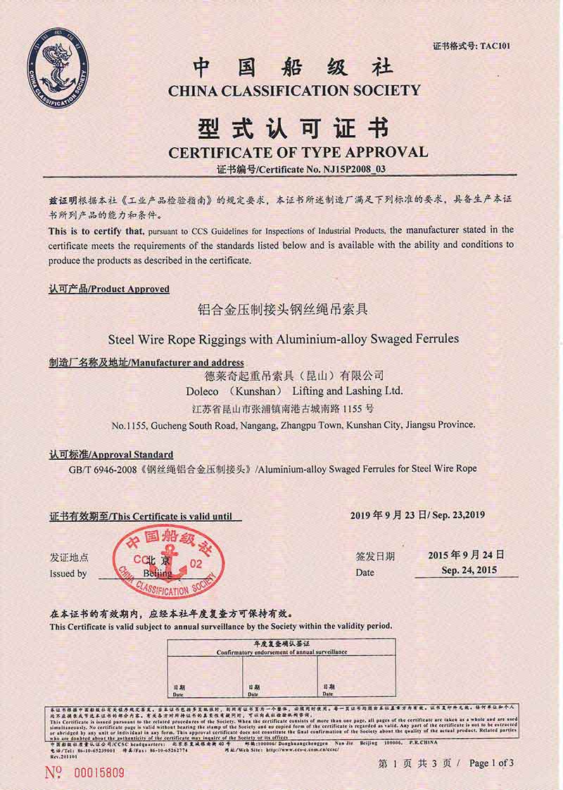 德國多來勁中國船級社型式認可證書CCS認證