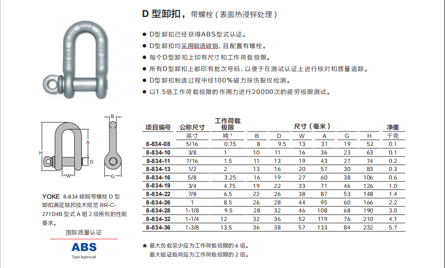 臺灣YOKE D 型卸扣( 表面熱浸鋅處理 )