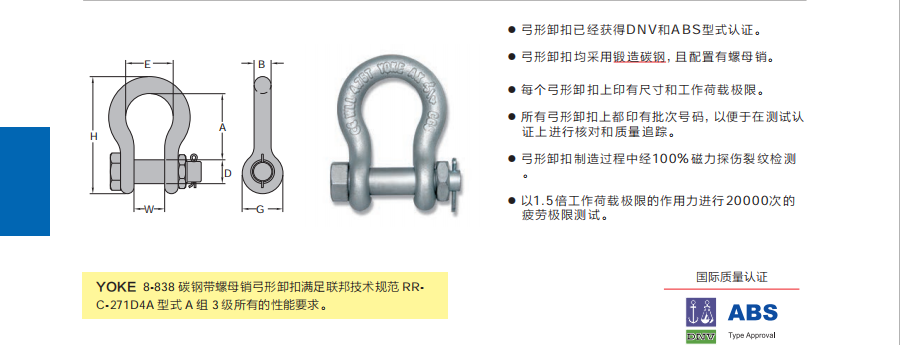 臺(tái)灣YOKE合金鋼弓形卸扣 ( 表面熱浸鋅處理 )